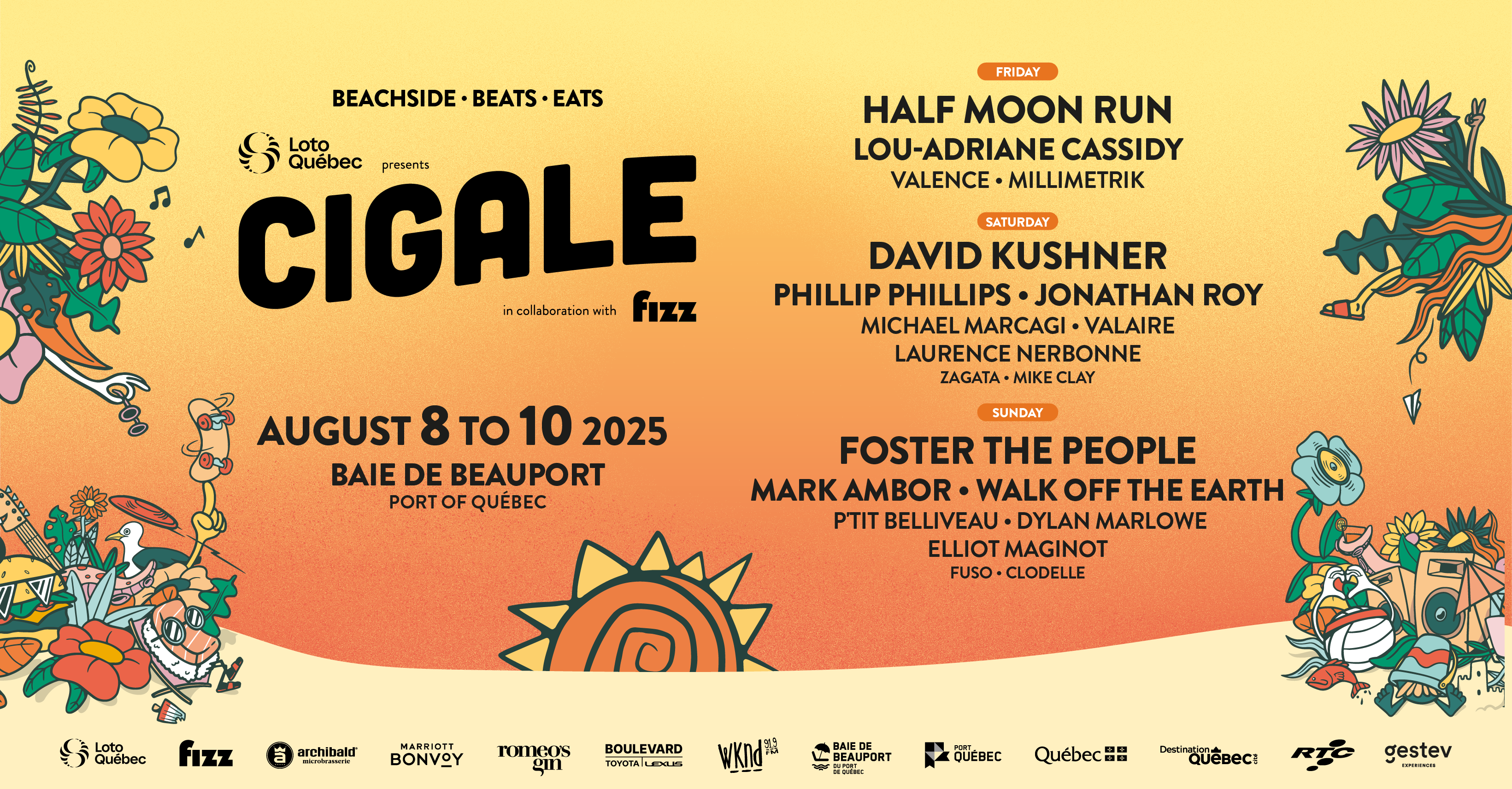 Cigale festival is back for its 4th edition presented by Loto-Québec in collaboration with Fizz. For the first time, the event will span three days, August 8, 9 and 10, 2025. Headliners include Half Moon Run, David Kushner and Foster The People, promising unforgettable performances on the beach at Baie de Beauport in the Port of Québec.