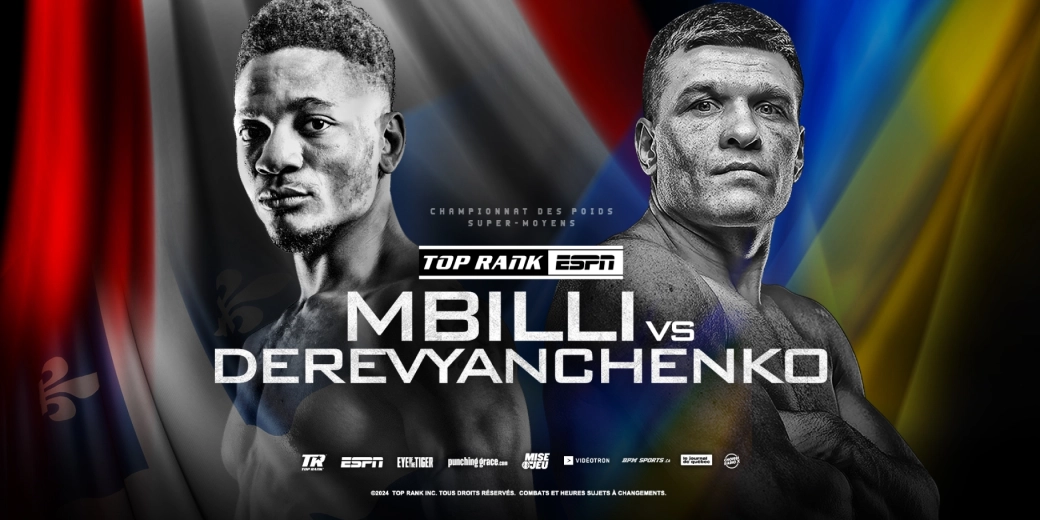 Le 17 août prochain, les puissances américaines ESPN et Top Rank uniront leurs forces avec Eye of the Tiger afin de présenter un duel de choc opposant l’aspirant #1 mondial à la WBC, Christian ‘Solide’ Mbilli (27-0, 23 K.-O.), et Sergiy ‘The Technician’ Derevyanchenko (15-5, 10 K.-O.), l’actuel aspirant #6 de la WBC fort d’un formidable bilan de près de 400 victoires chez les amateurs.