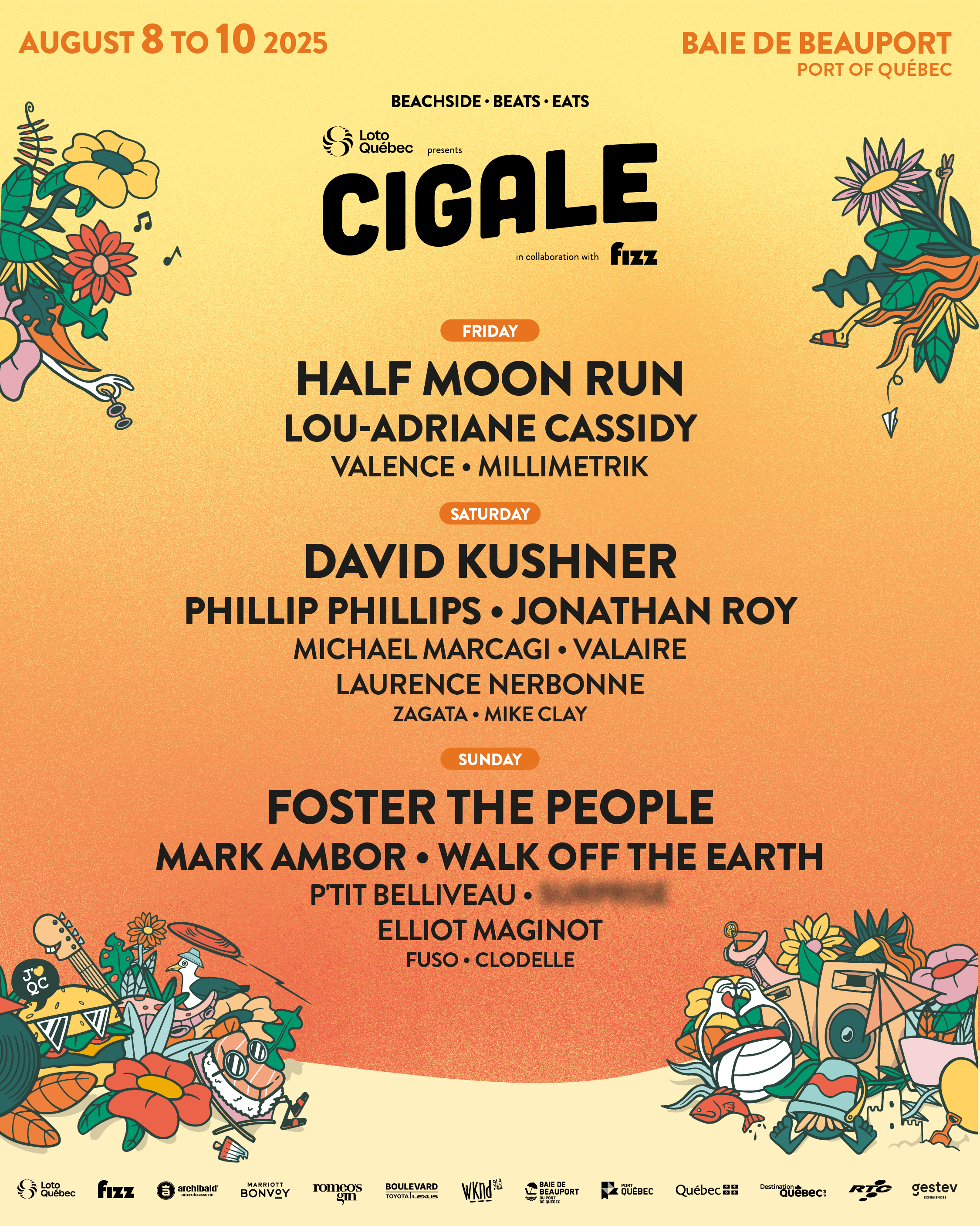 Cigale festival is back for its 4th edition presented by Loto-Québec in collaboration with Fizz. For the first time, the event will span three days, August 8, 9 and 10, 2025. Headliners include Half Moon Run, David Kushner and Foster The People, promising unforgettable performances on the beach at Baie de Beauport in the Port of Québec.