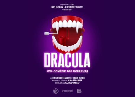 For the very first time in French, Dracula, a comedy of horrors will be presented in Quebec City. This daring and hilarious work by Gordon Greenberg and Steve Rosen revisits the vampire myth through an immersive staging where gothic horror meets dark humor.