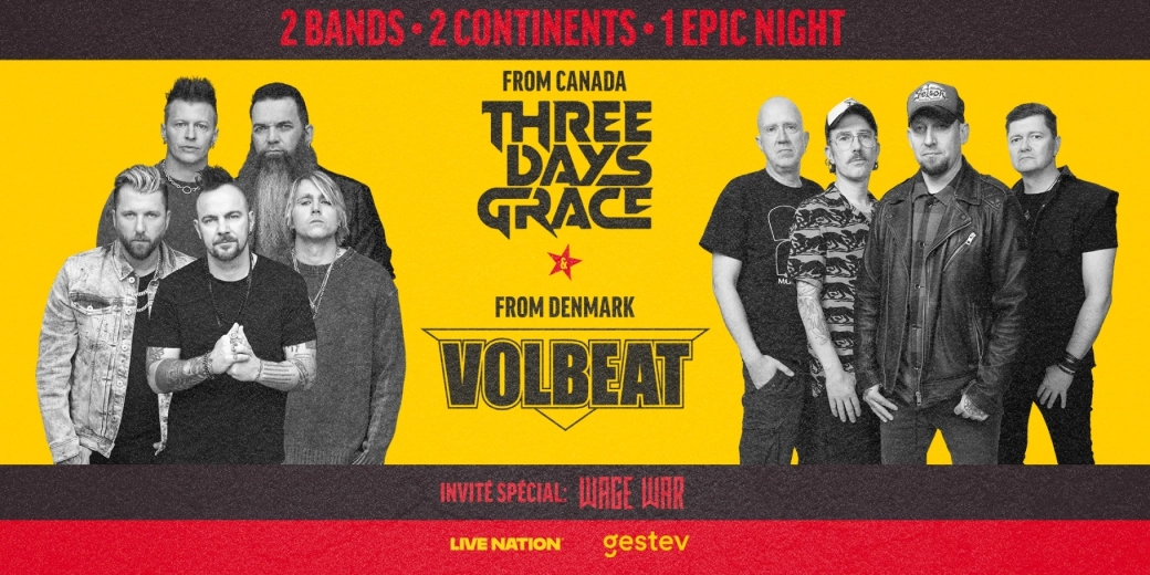 Rock legends Three Days Grace and Volbeat will bring their signature sounds to Quebec City this summer, with special guest Wage War! With Three Days Grace known for delivering extreme emotional moments over a framework of hard rock anthems and pensive ballads, and Volbeat renowned for taking the heavy metal, psychobilly and punk 'n' roll sound up a notch, the evening promises to be epic!
