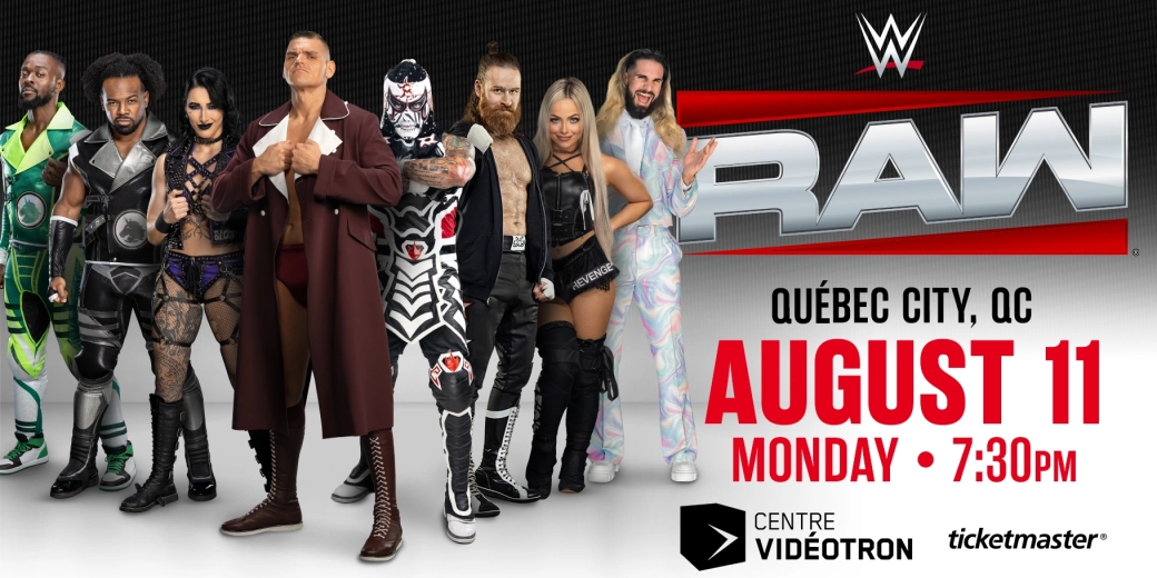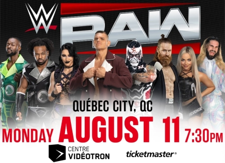 WWE returns to Quebec City! After a successful first run in 2023, Monday Night Raw will return to the Videotron Centre on Monday, August 11. Wrestling fans in the capital will soon be enjoying the supercharged atmosphere of the ring!