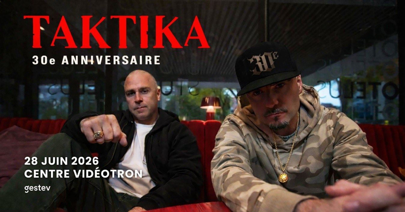 Québec, le mercredi 25 février 2026 — Le coup d’envoi du concert de Flo Rida sera donné en grand ! Le pilier du hip-hop québécois Taktika dévoile aujourd’hui qu’il aura l’honneur de réchauffer la foule du Centre Vidéotron le 28 juin prochain. Pour l’occasion, le duo célèbrera son 30e anniversaire à travers une tonne de classiques tirés de son répertoire et de celui du 83. Un spectacle-concept unique qui fera voyager le public au cœur de trois décennies, retraçant le parcours de l’un des groupes les plus influents du rap québécois.